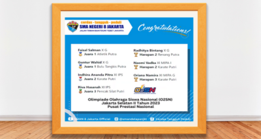 Alhamdulillah siswa SMAN 8 berhasil meraih prestasi pada O2SN tingkat Kota Jakarta Selatan.
